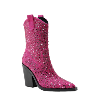 New Style Women's Ultra-High Heel Boots Pointed Toe Thick Heel Rhinestone Fashion Show Zip Solid One-Step Large Size for Autumn